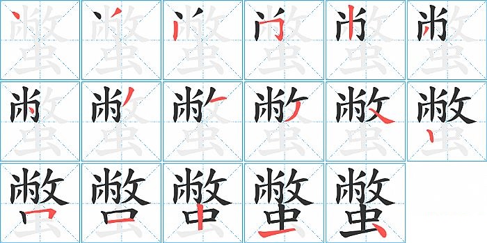 蟞是上下结构,蟞的部首是“虫”,部外笔画11画,总笔画17画,蟞的笔画顺序是“点、撇、竖、横折、竖、撇、点、撇、横、撇、捺、竖、横折、横、竖、横、点”。看看“蟞”字什么意思 >>