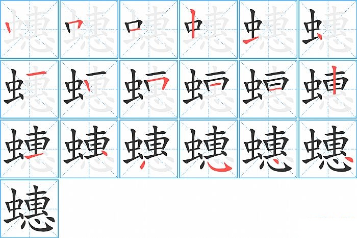 蟪是左右结构,蟪的部首是“虫”,部外笔画12画,总笔画18画,蟪的笔画顺序是“竖、横折、横、竖、横、点、横、竖、横折、横、横、竖、横、点、点、斜钩、点、点”。看看“蟪”字什么意思 >>