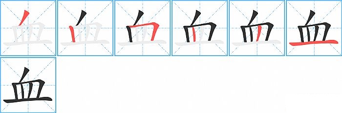 《血》字的笔顺分步演示图(一笔一画写汉字)