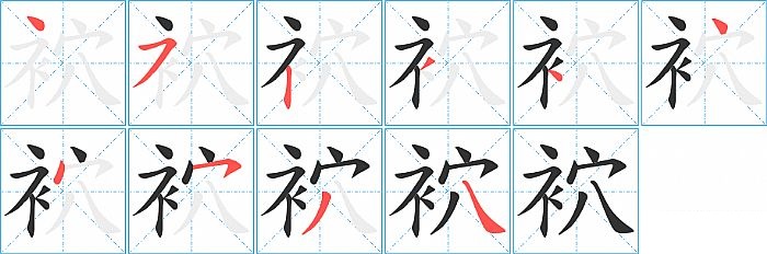 点、横撇/横钩、竖、撇、点、点、点、横撇/横钩、撇、捺