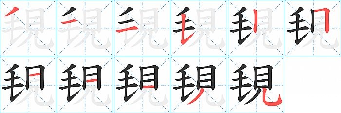 覒是左右结构,覒的部首是“見”,部外笔画4画,总笔画11画,覒的笔画顺序是“撇、横、横、竖提、竖、横折、横、横、横、撇、竖弯钩”。看看“覒”字什么意思 >>