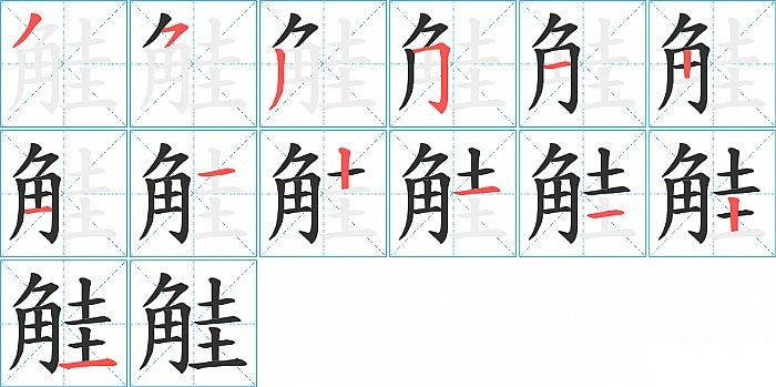觟是左右结构,觟的部首是“角”,部外笔画6画,总笔画13画,觟的笔画顺序是“撇、横撇/横钩、撇、横折钩、横、横、竖、横、竖、横、横、竖、横”。看看“觟”字什么意思 >>