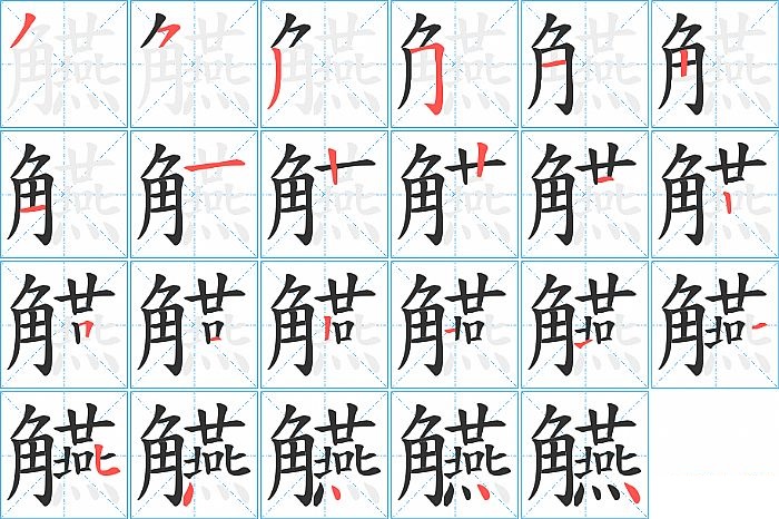 觾是左右结构,觾的部首是“角”,部外笔画16画,总笔画23画,觾的笔画顺序是“撇、横撇/横钩、撇、横折钩、横、横、竖、横、竖、竖、横、竖、横折、横、竖、横、提、撇、竖弯钩、点、点、点、点”。看看“觾”字什么意思 >>