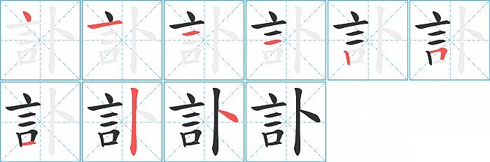 《訃》字的笔顺分步演示图(一笔一画写汉字)