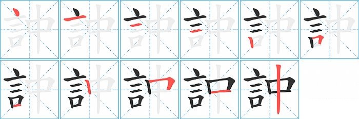 訲是左右结构,訲的部首是“言”,部外笔画4画,总笔画11画,訲的笔画顺序是“点、横、横、横、竖、横折、横、竖、横折、横、竖”。看看“訲”字什么意思 >>