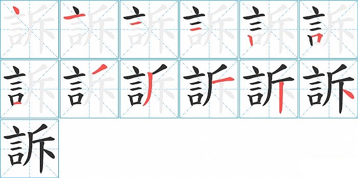 訴是左右结构,訴的部首是“言”,部外笔画5画,总笔画12画,訴的笔画顺序是“点、横、横、横、竖、横折、横、撇、撇、横、竖、点”。看看“訴”字什么意思 >>