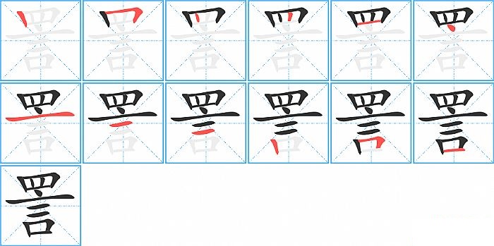 詈是上下结构,詈的部首是“言”,部外笔画5画,总笔画12画,詈的笔画顺序是“竖、横折、竖、竖、横、点、横、横、横、竖、横折、横”。看看“詈”字什么意思 >>
