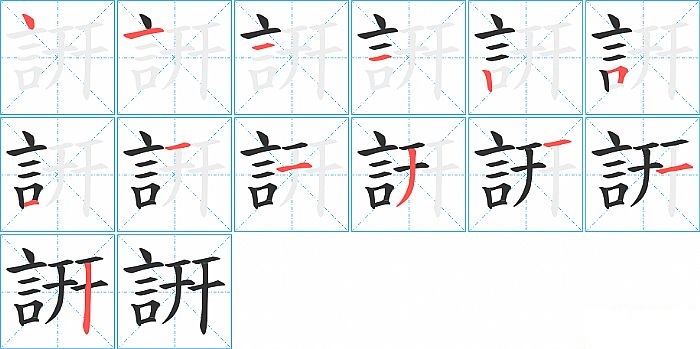 詽是左右结构,詽的部首是“言”,部外笔画6画,总笔画13画,詽的笔画顺序是“点、横、横、横、竖、横折、横、横、横、撇、横、横、竖”。看看“詽”字什么意思 >>
