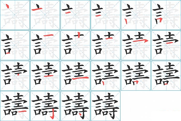 譸是左右结构,譸的部首是“言”,部外笔画14画,总笔画21画,譸的笔画顺序是“点、横、横、横、竖、横折、横、横、竖、横、横撇/横钩、横、竖、横、横、竖、横折、横、横、竖钩、点”。看看“譸”字什么意思 >>