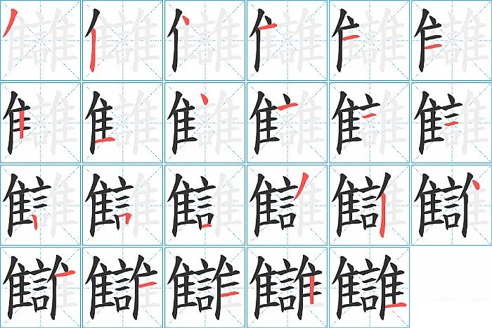 讎是左中右结构,讎的部首是“言”,部外笔画16画,总笔画23画,讎的笔画顺序是“撇、竖、点、横、横、横、竖、横、点、横、横、横、竖、横折、横、撇、竖、点、横、横、横、竖、横”。看看“讎”字什么意思 >>