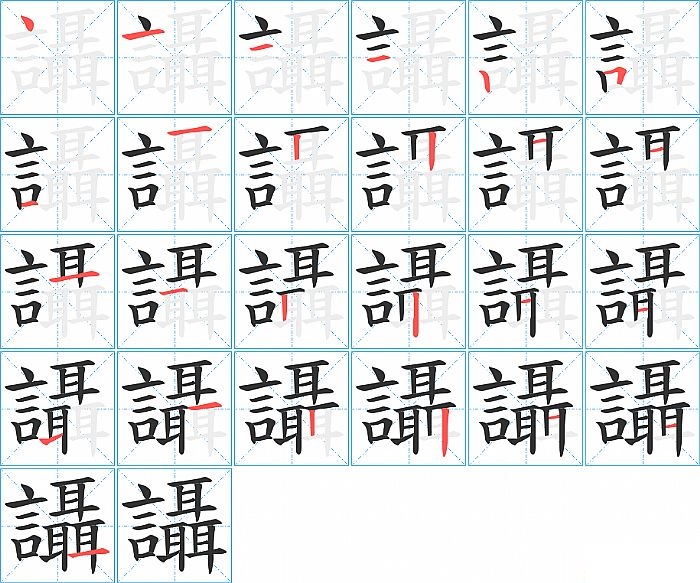 讘是左右结构,讘的部首是“言”,部外笔画18画,总笔画25画,讘的笔画顺序是“点、横、横、横、竖、横折、横、横、竖、竖、横、横、横、横、竖、竖、横、横、提、横、竖、竖、横、横、横”。看看“讘”字什么意思 >>