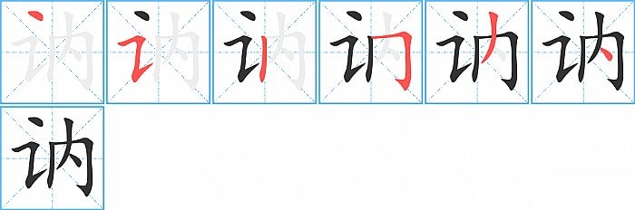 《讷》字的笔顺分步演示图(一笔一画写汉字)