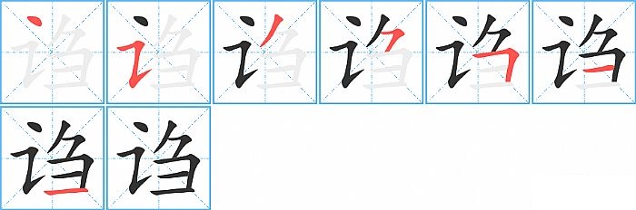 《诌》字的笔顺分步演示图(一笔一画写汉字)