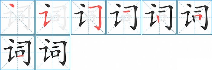 《词》字的笔顺分步演示图(一笔一画写汉字)