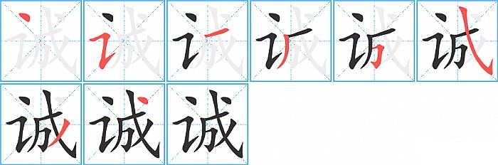 《诚》字的笔顺分步演示图(一笔一画写汉字)
