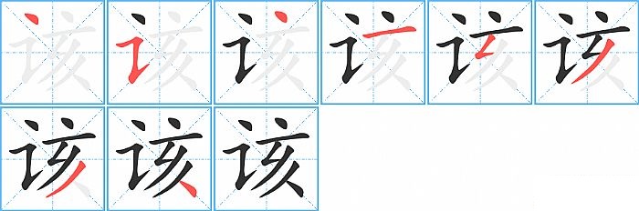 《该》字的笔顺分步演示图(一笔一画写汉字)