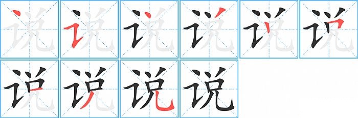 《说》字的笔顺分步演示图(一笔一画写汉字)