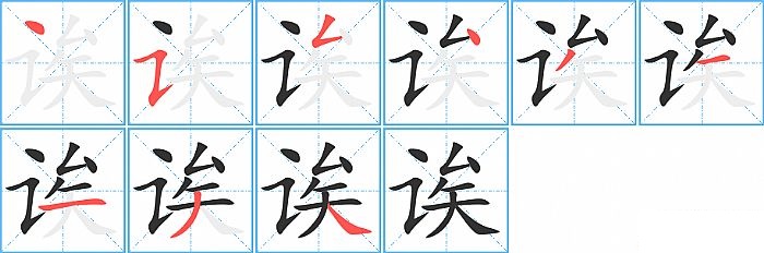 诶是左右结构,诶的部首是“讠”,部外笔画7画,总笔画9画,诶的笔画顺序是“点、横折提、撇折、点、撇、横、横、撇、捺”。