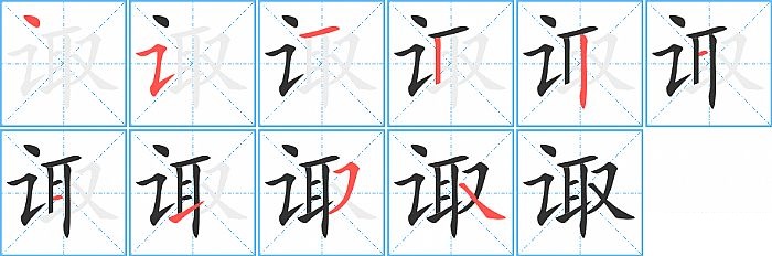 诹是左右结构,诹的部首是“讠”,部外笔画8画,总笔画10画,诹的笔画顺序是“点、横折提、横、竖、竖、横、横、提、横撇/横钩、捺”。看看“诹”字什么意思 >>