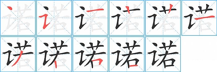 诺是左右结构,诺的部首是“讠”,部外笔画8画,总笔画10画,诺的笔画顺序是“点、横折提、横、竖、竖、横、撇、竖、横折、横”。看看“诺”字什么意思 >>