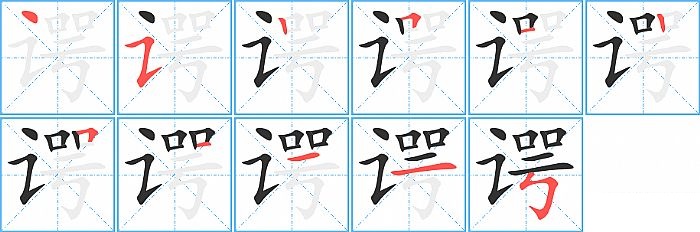 谔是左右结构,谔的部首是“讠”,部外笔画9画,总笔画11画,谔的笔画顺序是“点、横折提、竖、横折、横、竖、横折、横、横、横、竖折折钩”。看看“谔”字什么意思 >>