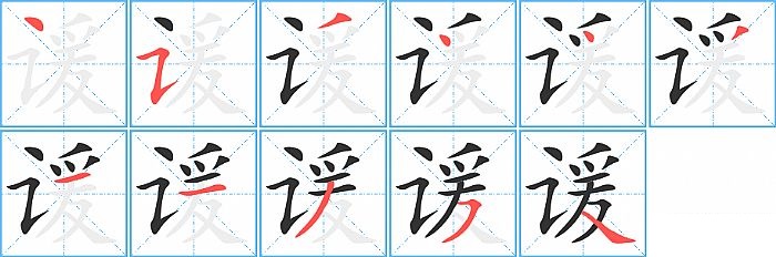 谖是左右结构,谖的部首是“讠”,部外笔画9画,总笔画11画,谖的笔画顺序是“点、横折提、撇、点、点、撇、横、横、撇、横撇/横钩、捺”。看看“谖”字什么意思 >>