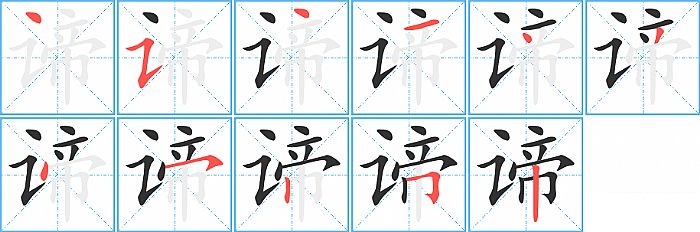 谛是左右结构,谛的部首是“讠”,部外笔画9画,总笔画11画,谛的笔画顺序是“点、横折提、点、横、点、撇、点、横撇/横钩、竖、横折钩、竖”。看看“谛”字什么意思 >>