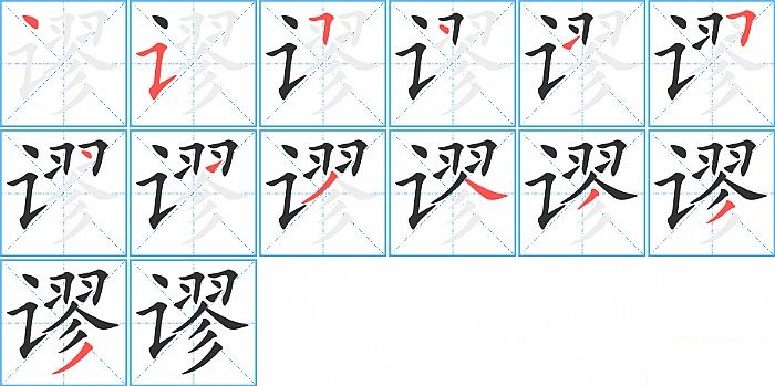 谬是左右结构,谬的部首是“讠”,部外笔画11画,总笔画13画,谬的笔画顺序是“点、横折提、横折、点、提、横折、点、提、撇、捺、撇、撇、撇”。看看“谬”字什么意思 >>