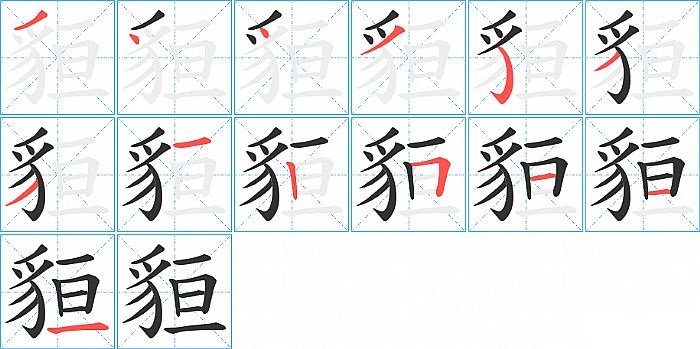 貆是左右结构,貆的部首是“豸”,部外笔画6画,总笔画13画,貆的笔画顺序是“撇、点、点、撇、弯钩、撇、撇、横、竖、横折、横、横、横”。看看“貆”字什么意思 >>
