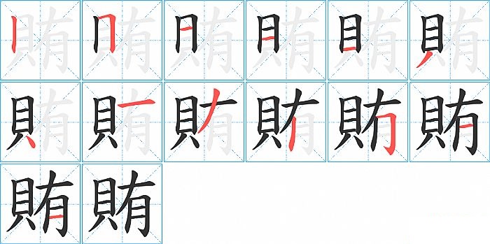 賄是左右结构,賄的部首是“貝”,部外笔画6画,总笔画13画,賄的笔画顺序是“竖、横折、横、横、横、撇、点、横、撇、竖、横折钩、横、横”。看看“賄”字什么意思 >>
