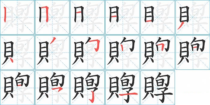 竖、横折、横、横、横、撇、点、撇、横折钩、竖、横折、横、横、横撇/横钩、竖钩、横