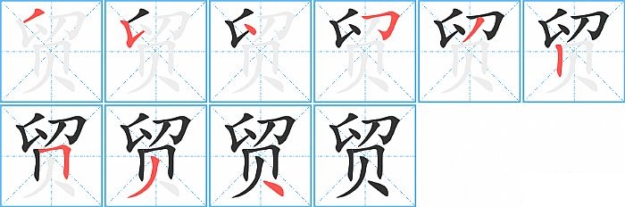 《贸》字的笔顺分步演示图(一笔一画写汉字)