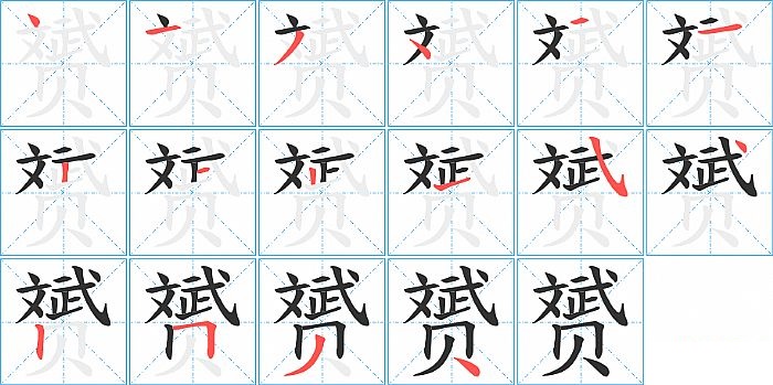 赟是上下结构,赟的部首是“贝”,部外笔画12画,总笔画16画,赟的笔画顺序是“点、横、撇、点、横、横、竖、横、竖、提、斜钩、点、竖、横折、撇、点”。看看“赟”字什么意思 >>