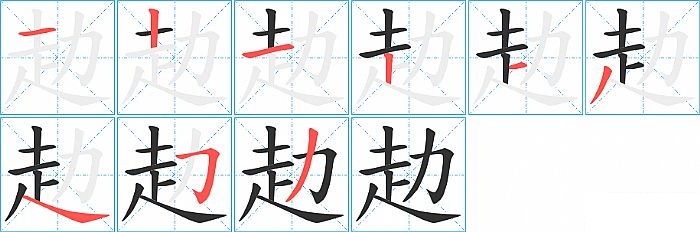 《赲》字的笔顺分步演示图(一笔一画写汉字)