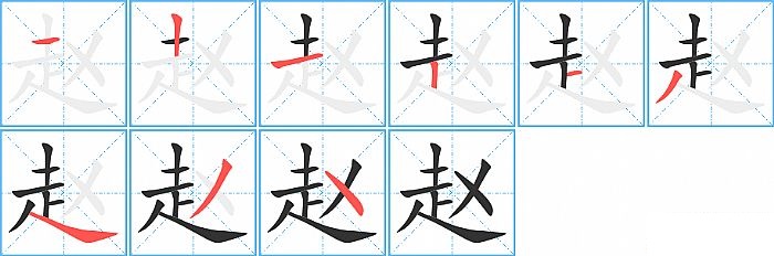 《赵》字的笔顺分步演示图(一笔一画写汉字)