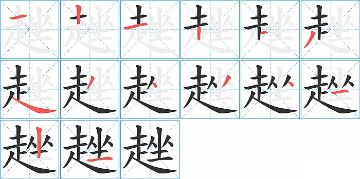 趖是左下包围结构,趖的部首是“走”,部外笔画7画,总笔画14画,趖的笔画顺序是“横、竖、横、竖、横、撇、捺、撇、点、撇、点、横、竖、横”。看看“趖”字什么意思 >>