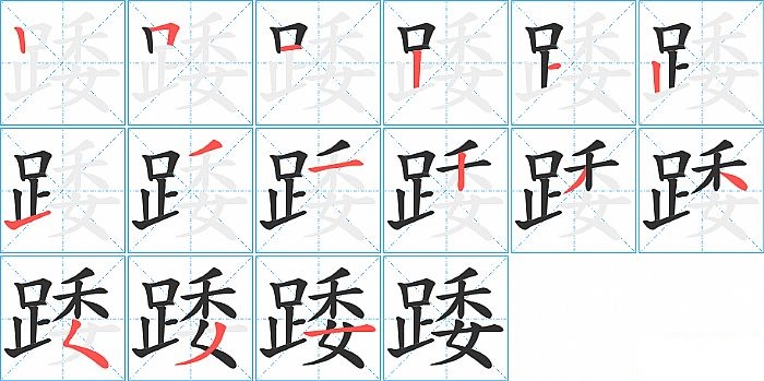 踒是左右结构,踒的部首是“足”,部外笔画8画,总笔画15画,踒的笔画顺序是“竖、横折、横、竖、横、竖、提、撇、横、竖、撇、捺、撇点、撇、横”。看看“踒”字什么意思 >>