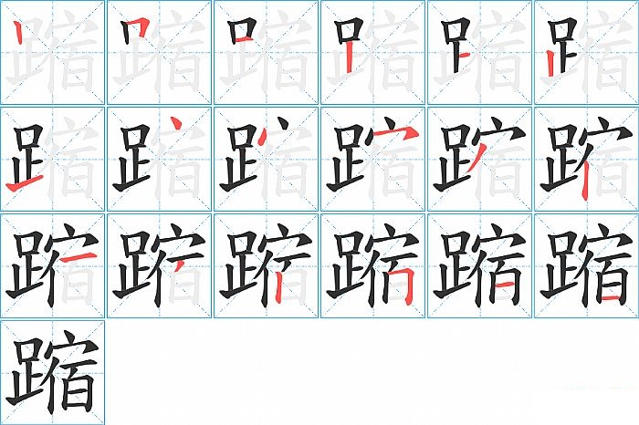 蹜是左右结构,蹜的部首是“足”,部外笔画11画,总笔画18画,蹜的笔画顺序是“竖、横折、横、竖、横、竖、提、点、点、横撇/横钩、撇、竖、横、撇、竖、横折、横、横”。看看“蹜”字什么意思 >>