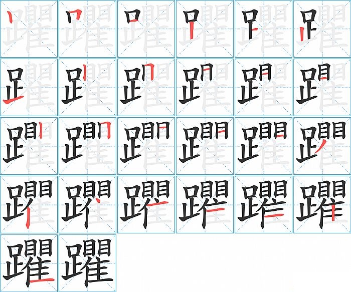 躣是左右结构,躣的部首是“足”,部外笔画18画,总笔画25画,躣的笔画顺序是“竖、横折、横、竖、横、竖、提、竖、横折、横、横、横、竖、横折、横、横、横、撇、竖、点、横、横、横、竖、横”。看看“躣”字什么意思 >>