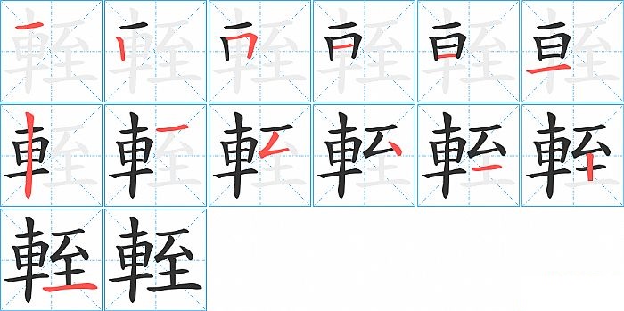 輊是左右结构,輊的部首是“車”,部外笔画6画,总笔画13画,輊的笔画顺序是“横、竖、横折、横、横、横、竖、横、撇折、点、横、竖、横”。看看“輊”字什么意思 >>