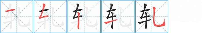 《轧》字的笔顺分步演示图(一笔一画写汉字)