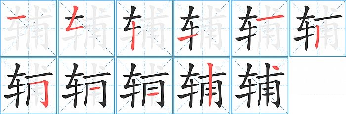 辅是左右结构,辅的部首是“车”,部外笔画7画,总笔画11画,辅的笔画顺序是“横、撇折、竖、提、横、竖、横折钩、横、横、竖、点”。看看“辅”字什么意思 >>