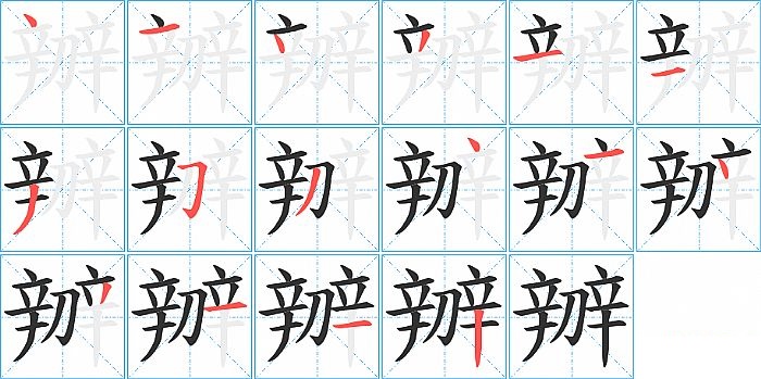 辧是左中右结构,辧的部首是“辛”,部外笔画9画,总笔画16画,辧的笔画顺序是“点、横、点、撇、横、横、撇、横折钩、撇、点、横、点、撇、横、横、竖”。看看“辧”字什么意思 >>
