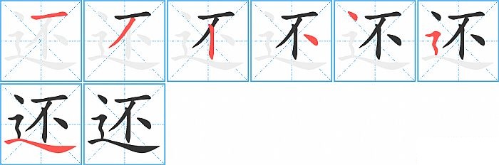 《还》字的笔顺分步演示图(一笔一画写汉字)