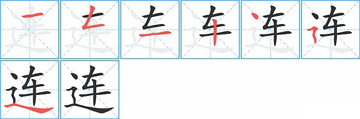 《连》字的笔顺分步演示图(一笔一画写汉字)