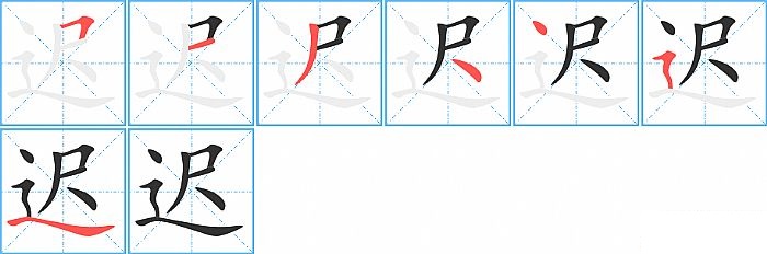 《迟》字的笔顺分步演示图(一笔一画写汉字)