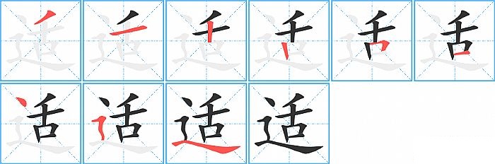 《适》字的笔顺分步演示图(一笔一画写汉字)