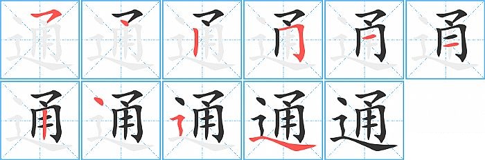 通是半包围结构,通的部首是“辶”,部外笔画7画,总笔画10画,通的笔画顺序是“横撇/横钩、点、竖、横折钩、横、横、竖、点、横折折撇、捺”。看看“通”字什么意思 >>