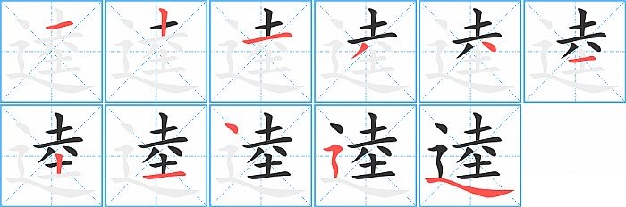 逵是半包围结构,逵的部首是“辶”,部外笔画8画,总笔画11画,逵的笔画顺序是“横、竖、横、撇、点、横、竖、横、点、横折折撇、捺”。看看“逵”字什么意思 >>