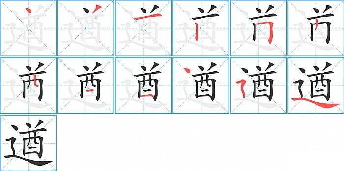 遒是半包围结构,遒的部首是“辶”,部外笔画9画,总笔画12画,遒的笔画顺序是“点、撇、横、竖、横折、撇、竖折/竖弯、横、横、点、横折折撇、捺”。看看“遒”字什么意思 >>